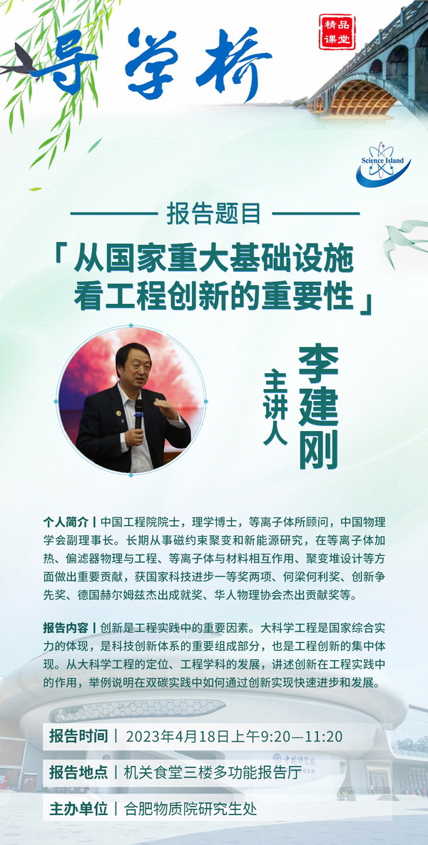 第五期课程特邀中国工程院院士李建刚老师开讲,安排详见文末海报,请全体导师积极参与,如不能出席,请提前发送请假信息至邮箱zhulj@hfcas.ac.cn或致电65596812告知,以便我们做好会务协调工作。