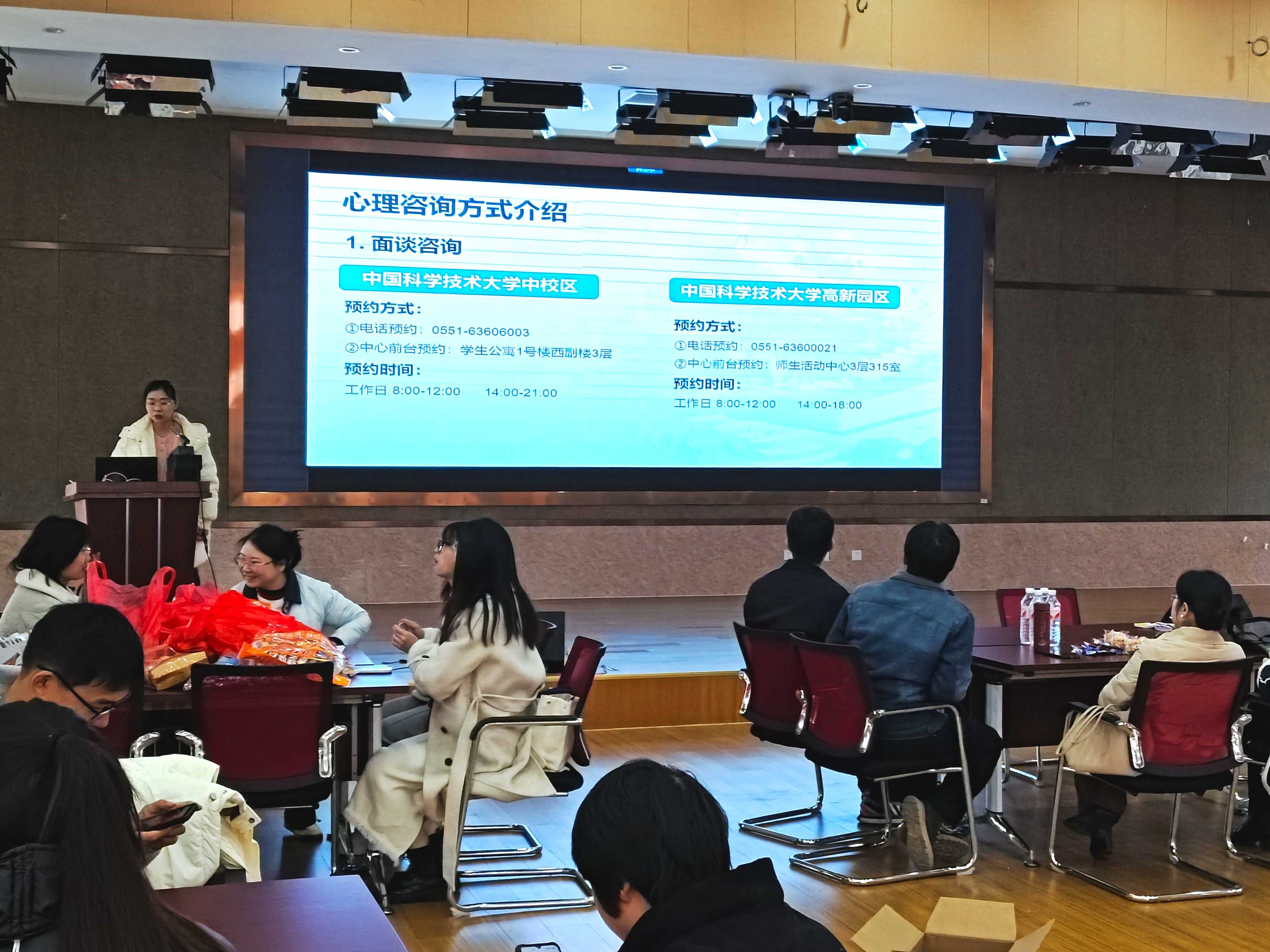 活动前,唐琪为大家介绍了中国科大心理中心的心理咨询分类和预约方式:分别为面谈咨询、邮箱咨询和网站在线咨询。她鼓励大家积极面对生活中的困难和心理困扰,若有需要及时寻求专业帮助。