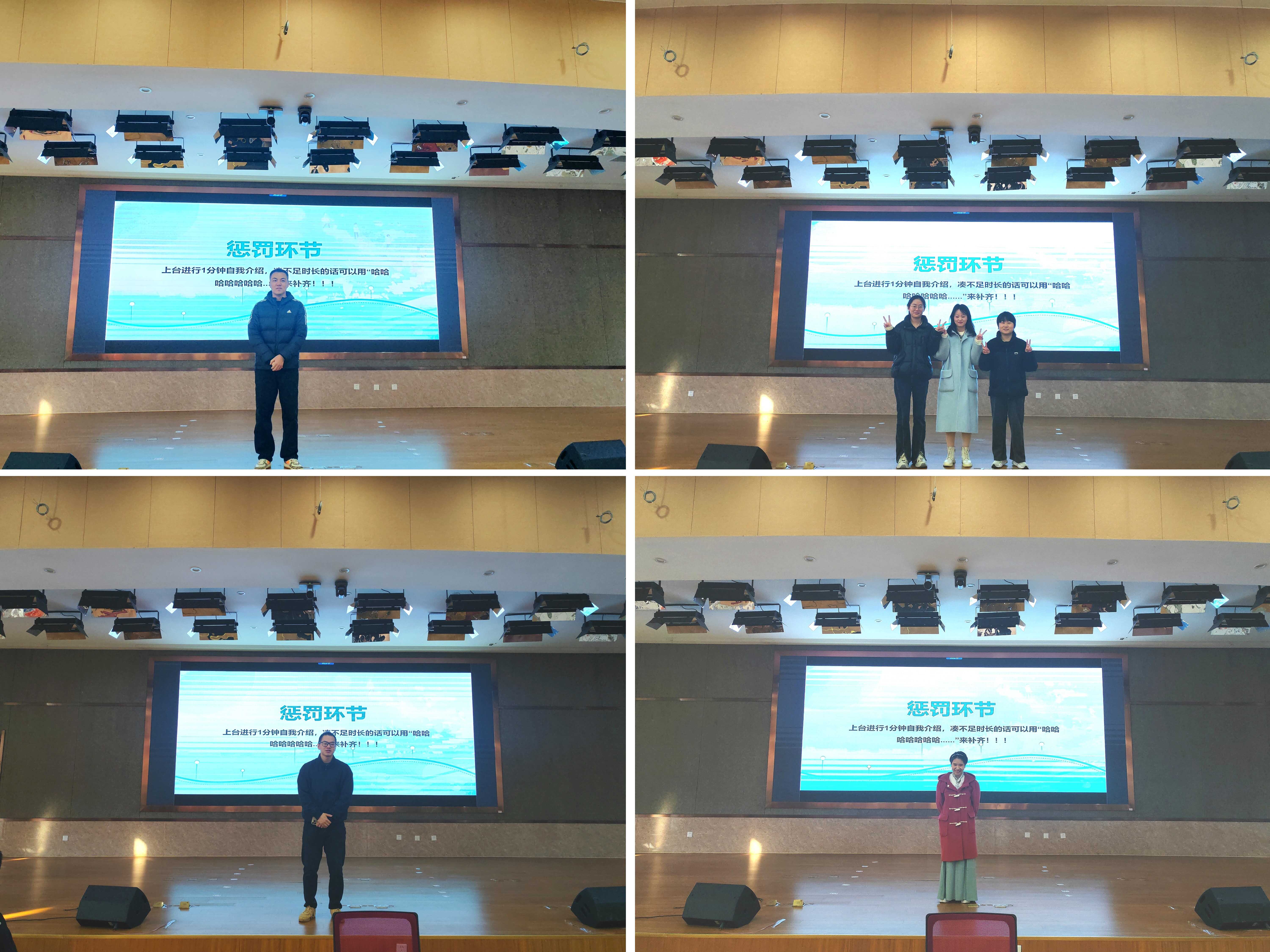 第一轮游戏“达芬奇密码”环节,现场参与人员被随机分为4个小组进行比赛,在轻松愉快的氛围中展开头脑风暴,最终决出一支队伍“奖励”一分钟自我介绍,同学们在欢声笑语中加深了对彼此的了解。