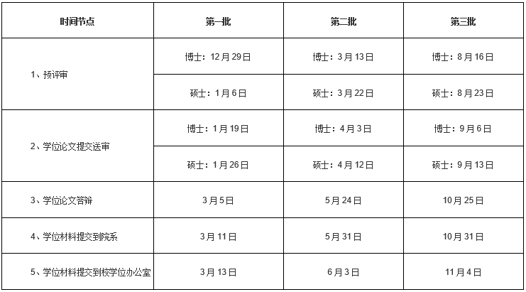 二、学位论文评审、学位论文答辩、学位申请时间节点安排如下: