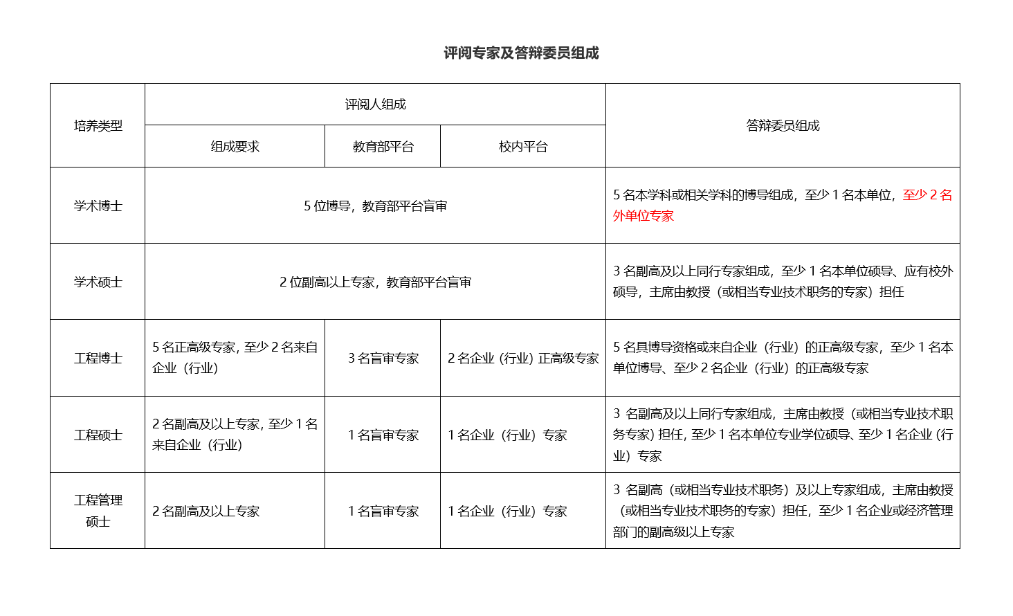 评阅专家及答辩委员组成补充说明: