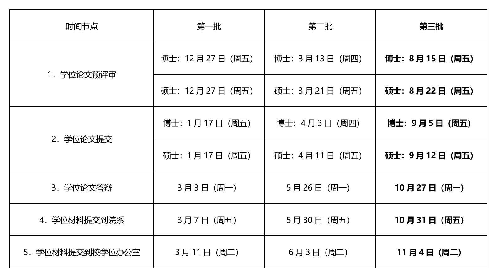 现将秋季批次学位论文预评审、盲审、学位论文答辩、学位申请时间节点安排如下: