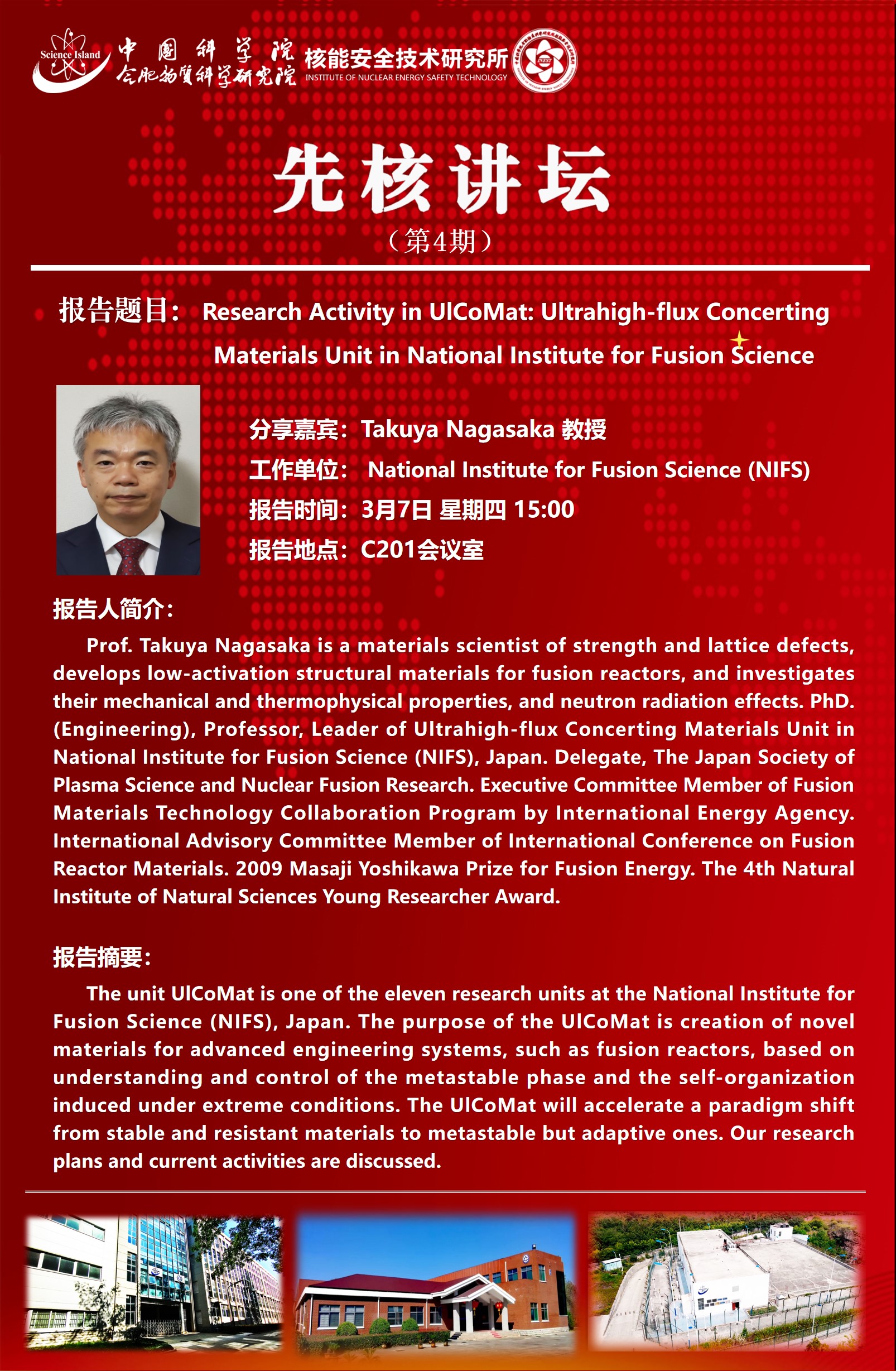 (3.7)先核讲坛:Research Activity in UlCoMat: Ultrahigh-flux Concerting Materials Unit in National Institute for Fusion Science