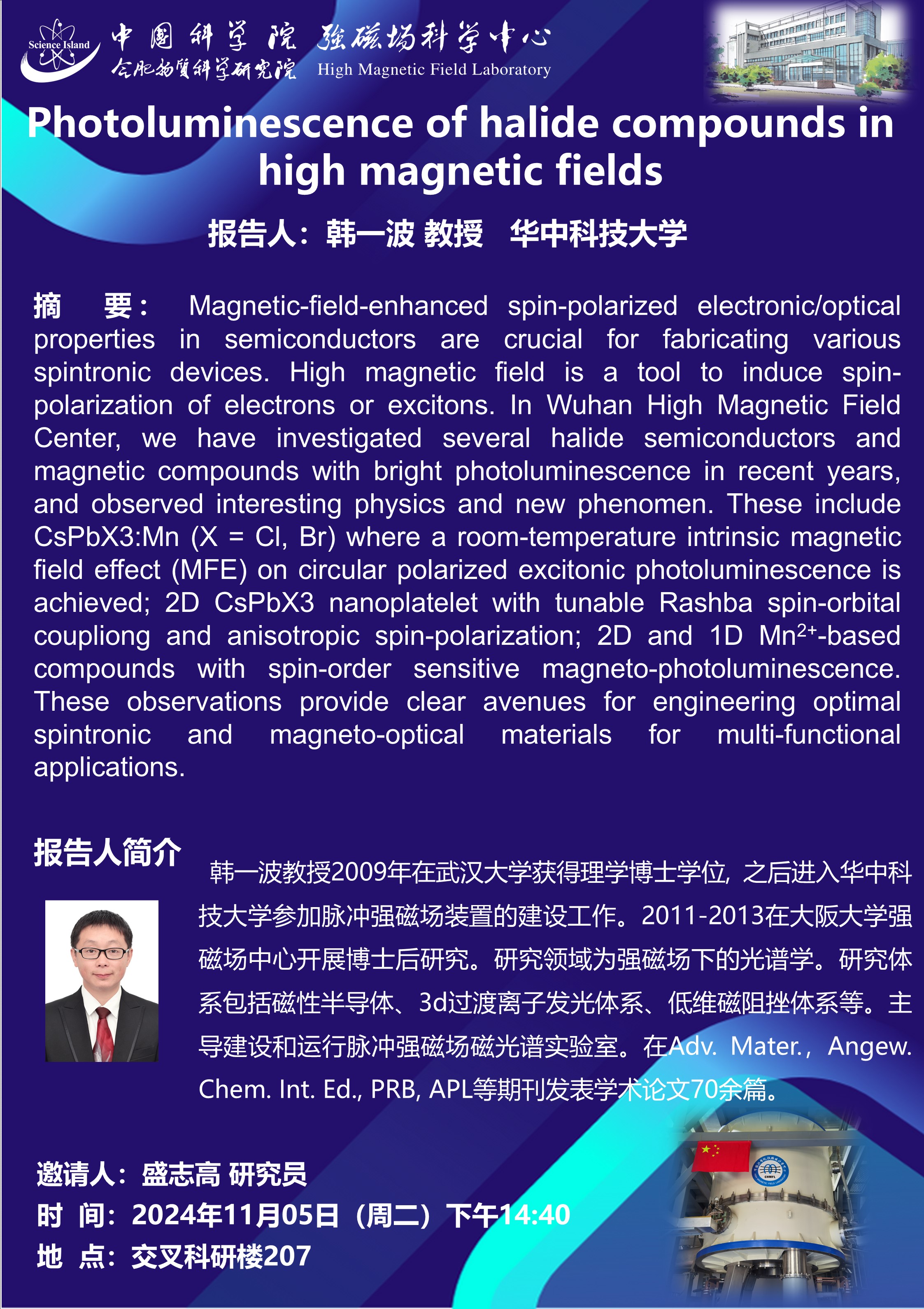 【11.5】Photoluminescence of halide compounds in high magnetic fields