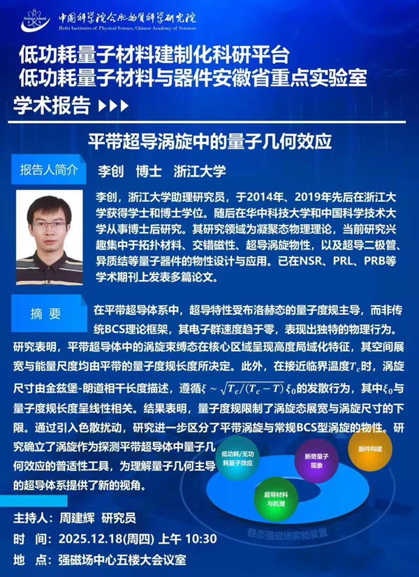 【12.18】学术报告:平带超导涡旋中的量子几何效应