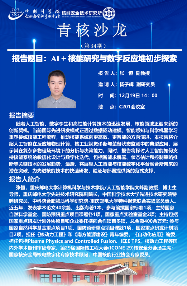 【12.19】学术报告:AI+核能研究与数字反应堆初步探索