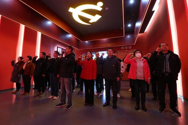大家来到序厅,观看全面从严治党主题教育片《永远在路上》,认真学习领会习近平总书记关于党风廉政建设和反腐败斗争重要讲话的深刻内涵。随后,大家依次参观了“纪律立党 从严治党”“廉润江淮 清风扬帆”“以案为鉴 警钟长鸣”“不忘初心 永葆清廉”四个展厅。大家一边驻足观看图文和视频,一边仔细聆听讲解员关于中国共产党的百年纪律建设史、全面从严治党的发展历程、全国典型违纪违法的案件和廉政楷模先进事迹等方面讲解。参观结尾,服务中心总支书记沈思源领誓,全体人员整齐列队,面对党旗,重温入党誓词,许下严守党的纪律、对党忠诚的誓言。