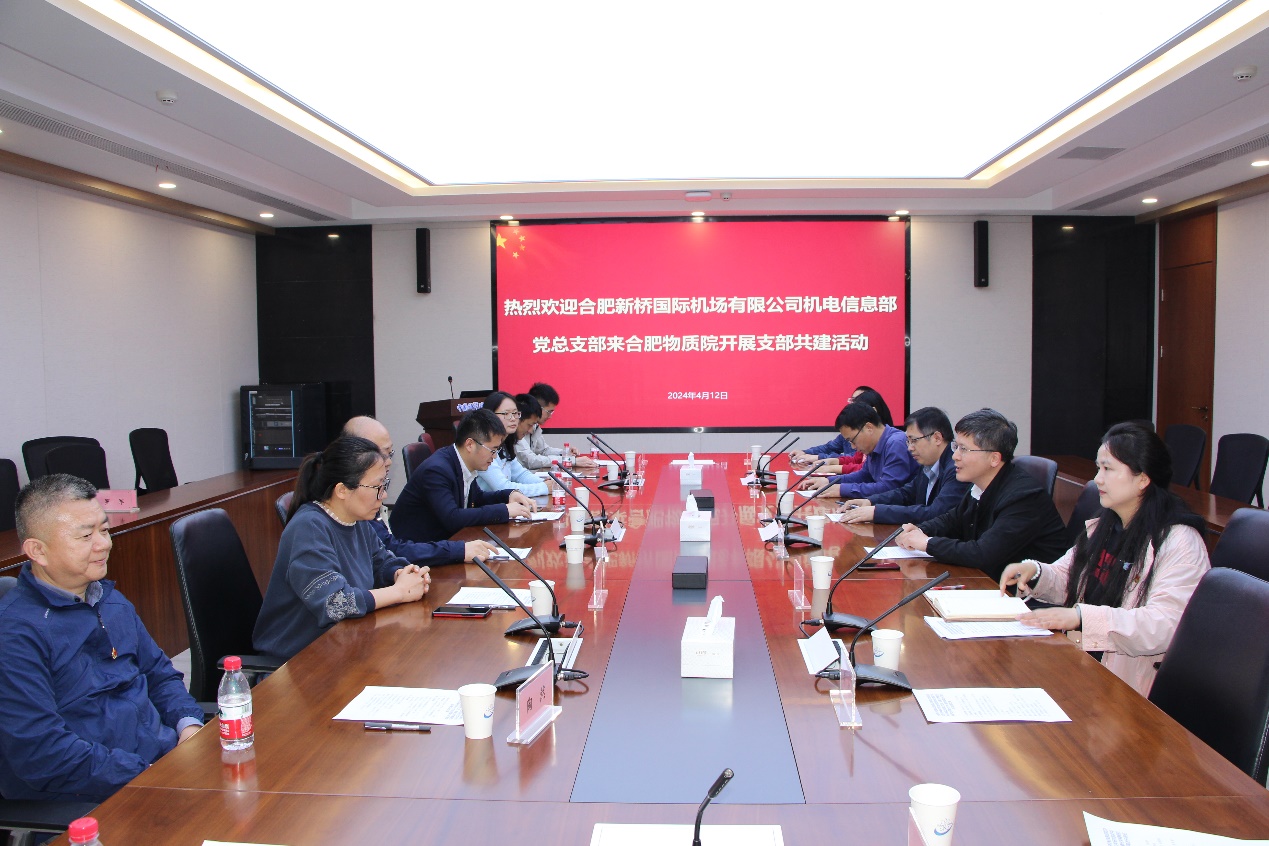 为进一步落实以党建引领促业务发展, 激发党员工作学习热情,4月12日,合肥物质院科学中心处党支部、安光所环境光学中心党总支与合肥新桥国际机场有限公司机电信息部党总支部联合开展共建活动。新桥机场机电部党总支纪检宣传委员、导航科党支部书记童克文带队到访,科学中心处党支部副书记伍德侠、安徽光机所环境光学中心党总支书记桂华侨等陪同参观座谈。