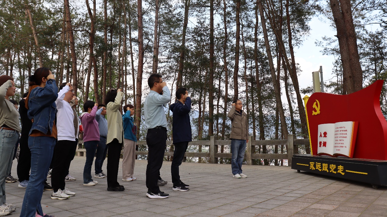 随后,大家乘车前往大别山烈士陵园,在“革命烈士永垂不朽”烈士纪念碑广场前,全体人员庄严肃立,怀着崇敬和庄重的心情向革命烈士三鞠躬并敬献花篮。随后在支部书记的带领下,党员们高举右手,面向鲜红的党旗庄严宣誓,重温入党誓词,缅怀革命先烈抛头颅、洒热血的伟大革命精神。