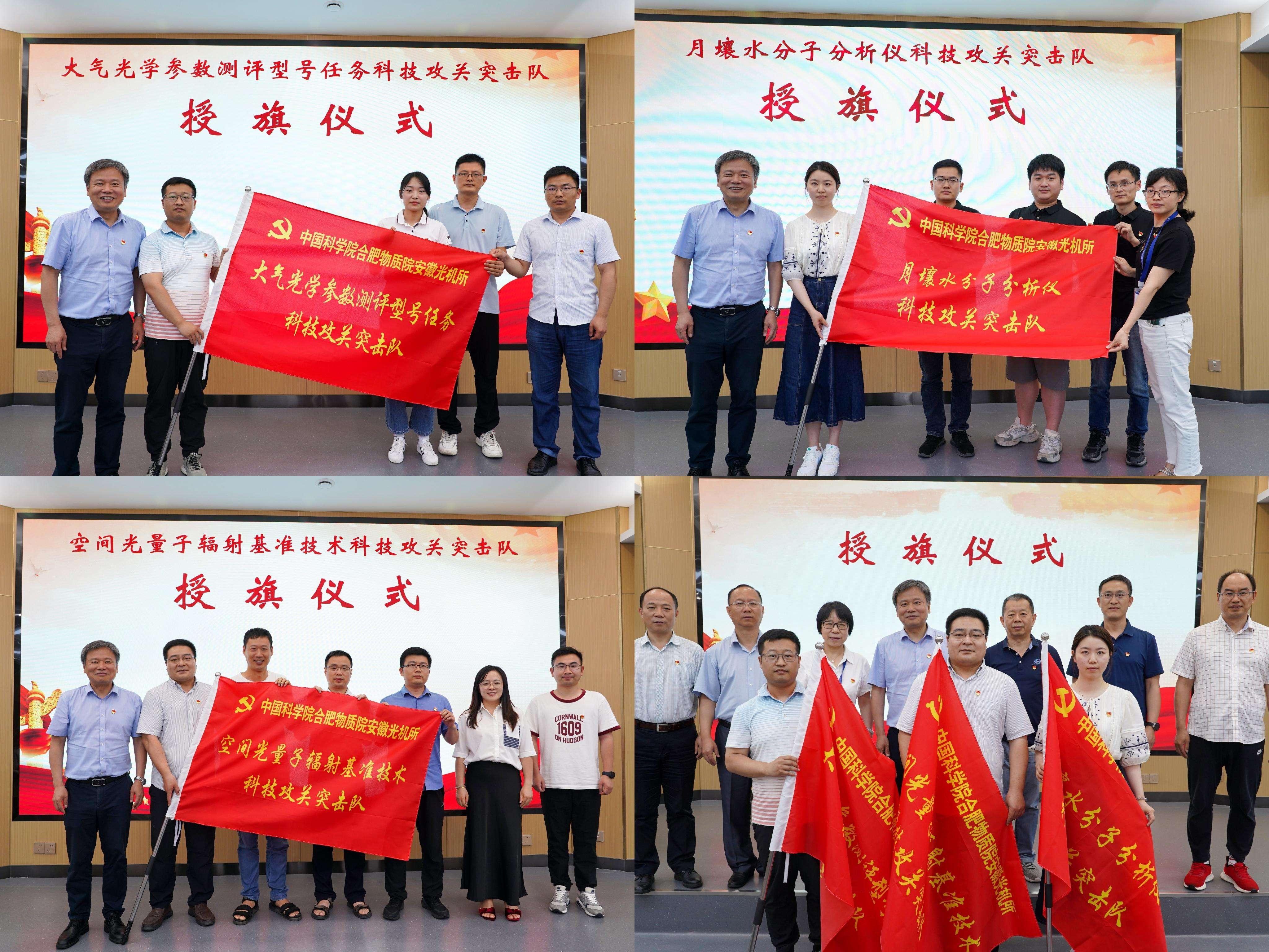 郑小兵所长宣读了安光所党委关于成立科技攻关突击队的决定。为在重大任务中强化党建引领,充分发挥党组织在科技创新工作中的战斗堡垒作用,强化专项攻关突击队建设,安光所正式成立大气光学参数测评型号任务科技攻关突击队、月壤水分子分析仪科技攻关突击队、空间光量子辐射基准技术科技攻关突击队。并举行科技攻关突击队授旗仪式。