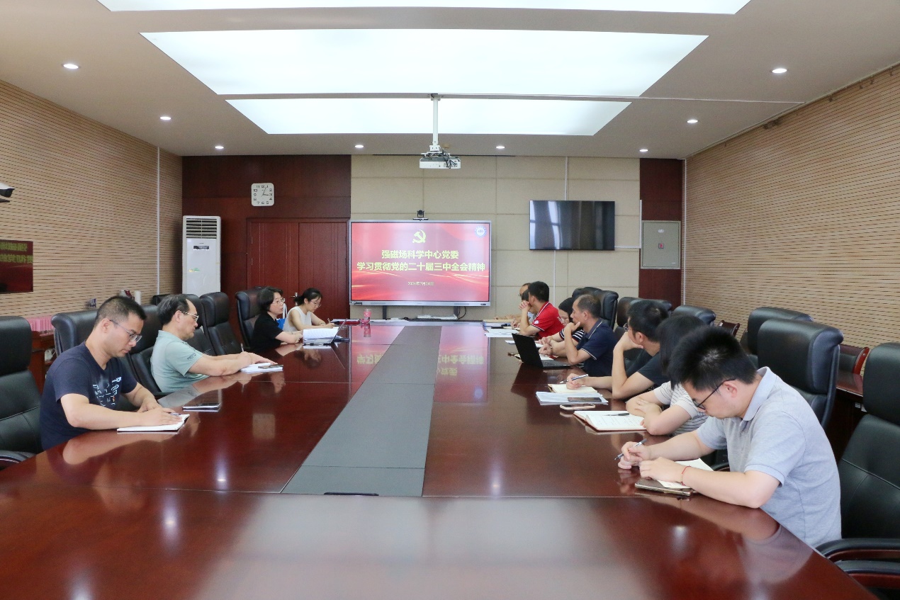 7月24日,强磁场中心党委召开理论学习中心组(扩大)学习会议,传达学习党的二十届三中全会精神,中心党委委员、各支部书记和支委参会,会议由中心党委书记许安主持。