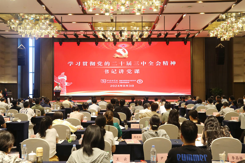 为深入学习贯彻党的二十届三中全会精神,推进年度重点工作任务顺利完成,2024年8月3日下午,中国科学院合肥物质院健康所党委书记、中国科学院合肥肿瘤医院院长王宏志为医院全体管理干部讲授题为《学习贯彻党的二十届三中全会精神,进一步全面深化改革,推进医院高质量发展》的主题党课,医院领导班子成员、全体管理干部及特聘专家参加了党课。