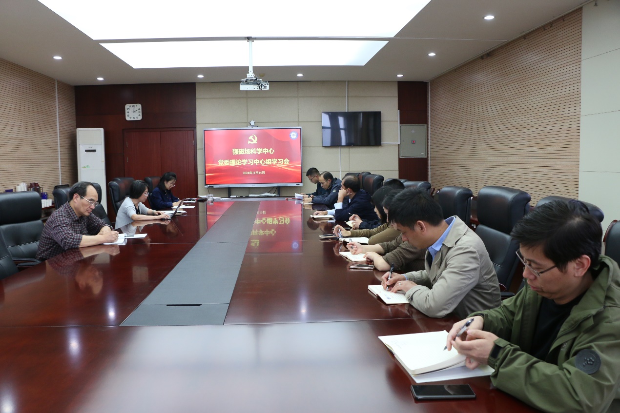 11月15日,强磁场科学中心党委召开理论学习中心组(扩大)学习会议,传达学习习近平总书记在省部级主要领导干部学习贯彻党的二十届三中全会精神专题研讨班开班式上的重要讲话精神,持续深入学习贯彻党的二十届三中全会精神。中心党委委员、各支部书记和支委参会,会议由中心党委书记许安主持。