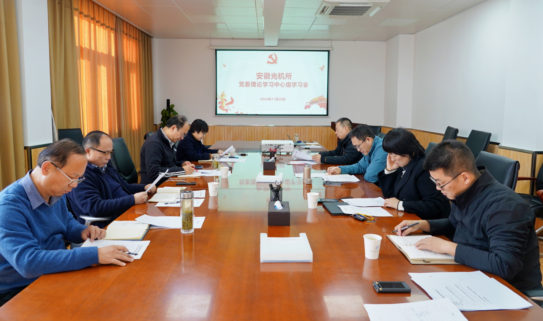 11月26日,安光所召开党委理论学习中心组会议,深入学习习近平总书记考察安徽重要讲话精神。会议由党委书记谢品华主持,全体中心组成员参会。