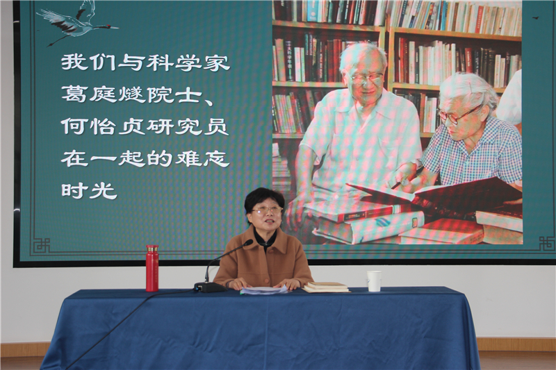 活动特邀《中国科学报》安徽记者站原站长张建平作了题为《我们与科学家葛庭燧院士、何怡贞研究员在一起的难忘时光》的讲座,回顾了葛庭燧夫妇传奇的一生和高尚的品格。