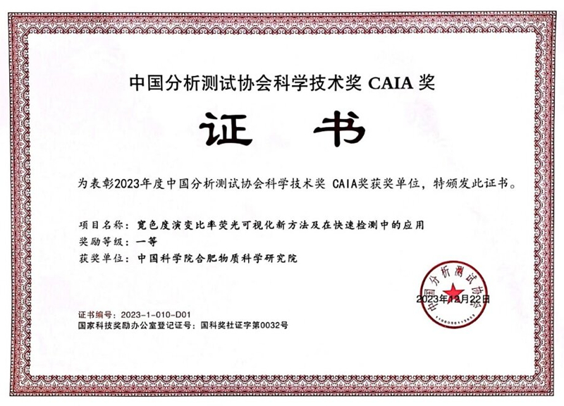 科学岛团队合作成果获2023年度中国分析测试协会科学技术奖(CAIA)一等奖