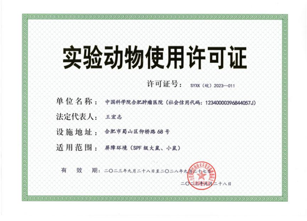 近日,中国科学院合肥肿瘤医院实验动物中心通过现场评审验收,顺利获得《实验动物使用许可证》。