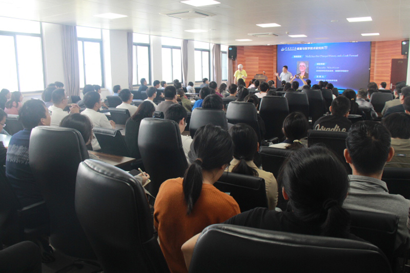 会上,Mitchison教授围绕药物开发的历史,从经典的“钥匙-锁理论”为起始,以经典药物吗啡为例,讲述了早期阶段药物发现的思路和路径。吗啡由于具有显著的镇痛和镇静作用,成为临床上的强效镇痛药,但由于其呼吸抑制导致死亡的严重不良反应,则限制了其使用,因此,当科学家在明确吗啡的双重作用是由于其对不同信号通路的调控后,开展了大量的结构优化工作,保留其镇痛作用而消除其呼吸抑制毒性。接着,Mitchison教授指出,随着药物研发的不断的深入,人们转向到了对“Magic Bullet”(魔法子弹)式的药物研发,该理论在1910年,著名药物学家Paul Ehrlich提出,旨在描绘一种可以选择性地杀死恶性细胞而不伤害正常组织的药物的概念,经典的抗生素类药物盘尼西林为代表,对精准药物的开发进行了解读。此外,Mitchison教授还针对目前精准疗法的代表基因疗法针对某一致病蛋白或基因,进行特异性的修饰,以实现治疗传统药物不能治疗的疾病的策略进行了讨论。最后,在回顾了整个药物开发史之后,Mitchison教授对将来的医药发展趋势阐述了自己独到的见解,认为从中国传统的中药中寻找发掘新的药物是一个非常有潜力的手段和方法。报告结束后,Mitchison教授跟参会的老师同学进行就学术方面的其他问题开展了热烈深入的交流和讨论。