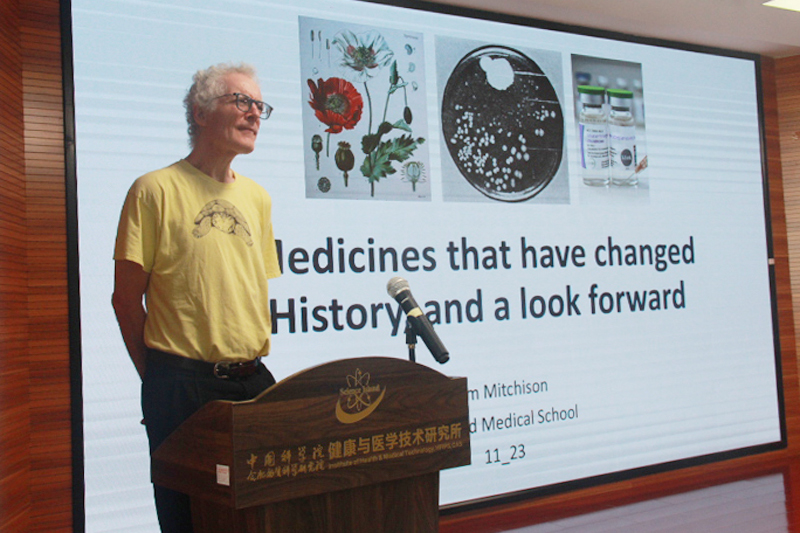 10月31日至11月1日,应中国科学院合肥物质院健康所所长刘青松研究员邀请,美国科学院院士、哈佛大学医学院终身教授Timothy Mitchison访问健康所及中国科学院合肥肿瘤医院,并作了一场以“Medicines that Changed History, and a Look Forward”为主题的精彩报告,健康所科研人员、研究生、肿瘤医院医务骨干等100余人参加活动,刘青松所长主持报告会。