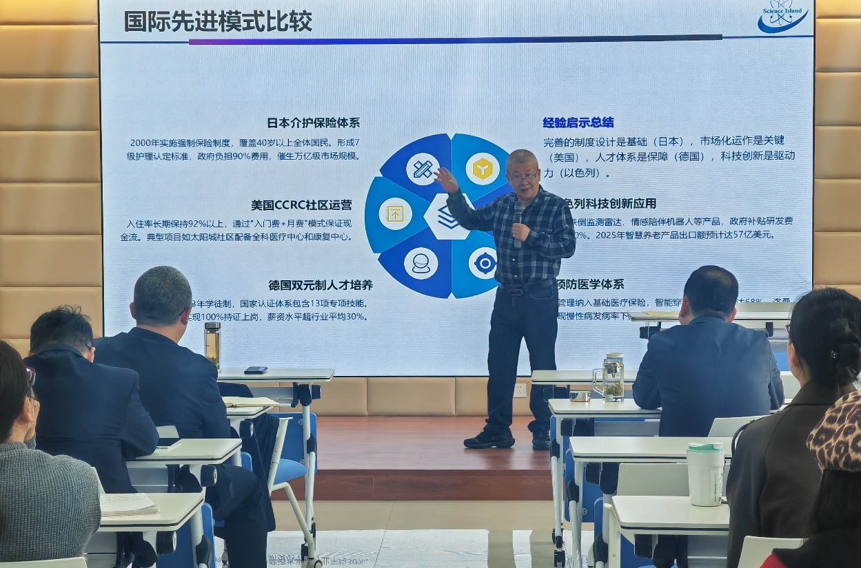 孙怡宁以“康养产业发展与科技赋能路径”为主题,系统梳理了康养产业的历史演进与全球发展模式,指出随着“健康中国2030”上升为国家战略,中国康养产业迎来重大发展机遇。他提出以技术赋能与模式创新为核心的双轮驱动路径:依托人工智能、大数据、数字孪生等技术构建人体健康虚拟模型,推动预防医学从“治疗已病”向“预测未病”转型,同时深化校企协同,培养具备多维度照护能力的专业人才。他建议构建覆盖活力老人社区、康复中心、安宁疗护的全周期服务体系,并呼吁破解民办机构重资产投入与服务匹配度不足的困境,平衡公立与民办机构协同发展的市场生态。