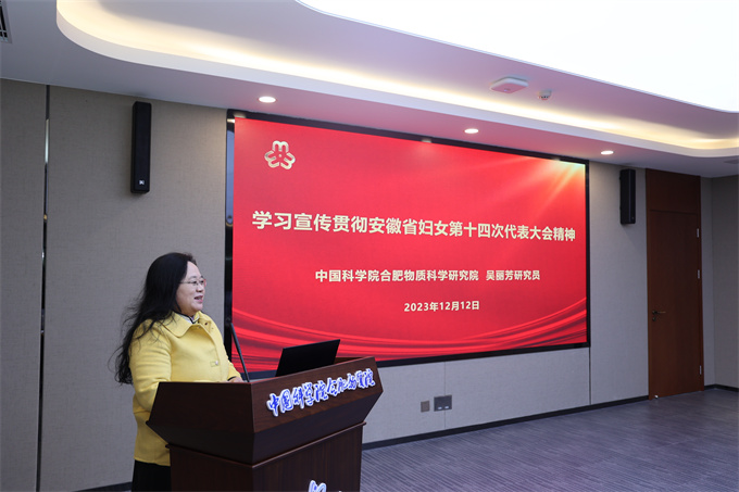 合肥物质院智能所党委书记吴丽芳作了题为《学习宣传贯彻安徽省妇女第十四次代表大会精神》的主题报告。她带领大家一起学习了省委书记韩俊和全国妇联副主席冯玲在开幕式上的讲话精神,详细介绍了省妇女十四大盛况,并对省妇联党组书记、主席谢兵所作的题为《牢记嘱托担使命 奋楫笃行开新局 团结引领广大妇女为谱写更加壮丽的中国式现代化安徽篇章贡献巾帼力量》的工作报告进行了重点解读,号召大家在新时代新征程书写“半边天”新荣光。