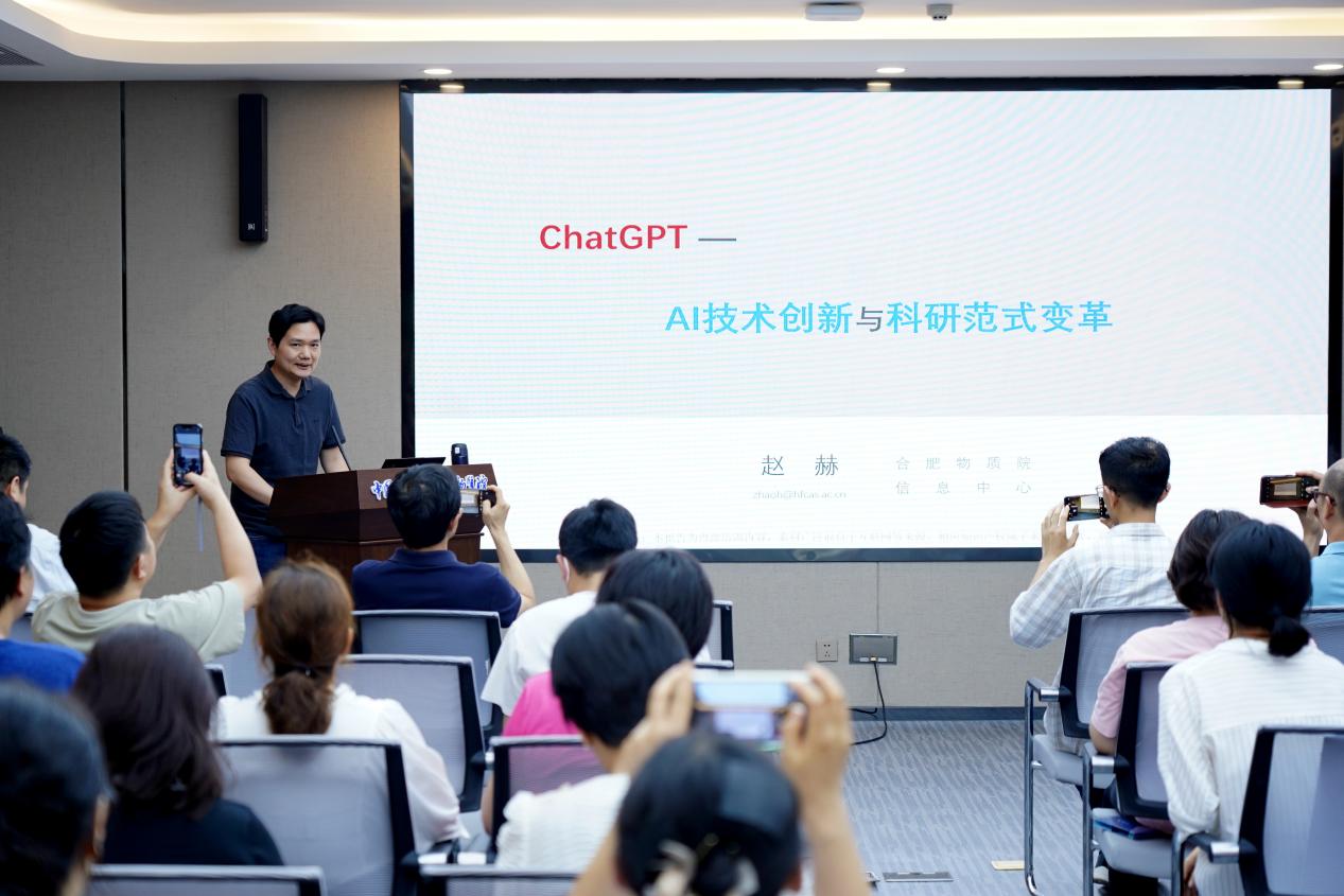 在科技日新月异的今天,人工智能正逐步成为推动科研进步的重要力量。6月27日,合肥物质院举办了共享成长营第12期数智前沿系列活动,聚焦于“ChatGPT—AI技术创新与科研范式变革”,吸引了来自各科研单元各部门的70余位职工、学生积极参与,共同探索人工智能技术在科研领域的无限可能。