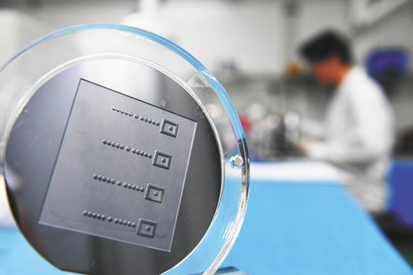 4英寸玻璃穿孔晶圆。记者 徐旻昊 摄