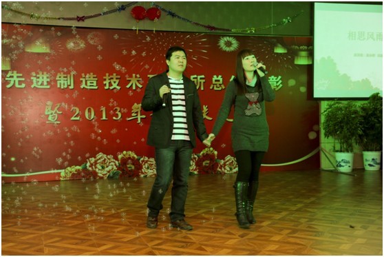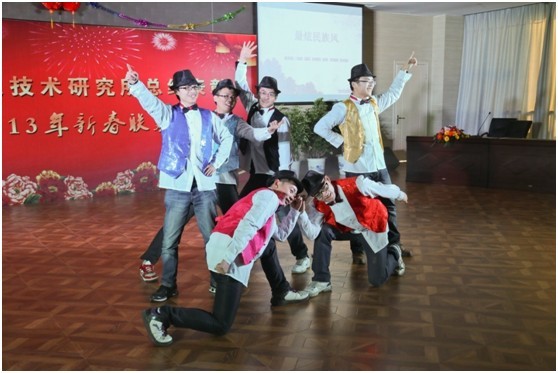 动感歌舞《最炫民族风》拉开了联欢会的序幕,近三个小时的演出中,大家表演了丰富多彩的节目,有歌曲《相思风雨中》、相声《我要谈恋爱》、手语舞蹈《恭喜发财》、古筝独奏《渔舟唱晚》等,智能车辆中心表演的三句半《新春祝福》带给大家美好的祝愿、机器人技术研究中心表演的小品《大话三国之煮酒论英雄》希望大家淡泊名利,永攀高峰、数字化设计与制造研究中心表演的小品《信使》诠释了现代科技带来的便捷,研究生们表演的话剧《感恩的心》希冀人们感恩社会。整个联欢会节目精彩纷呈、激情飞扬,最后在大合唱《爱我中华》激昂的乐曲中圆满结束!