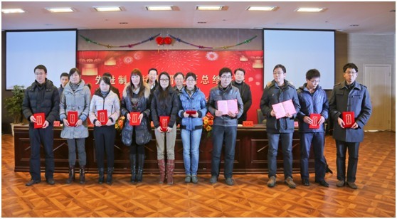 副所长骆敏舟、孔令成和梁华为分别宣读了关于表彰2012年度优秀职工、优秀共产党员、优秀研究生的决定;研究院党委副书记、纪委书记单文钧发表了热情洋溢的新年贺辞,他对先进制造所一年来取得的各项成绩表示肯定和祝贺,感谢广大职工一年来付出的辛勤劳动,并祝福大家在新的一年里身体健康、阖家幸福、万事如意。