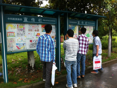 5月30日,固体所宣传栏内焕然一新,往日严肃、严谨的学术报告、活动通知不见了,取而代之的是一幅幅色彩斑斓、充满童趣的图画。原来,为庆祝“国际六一儿童节”,这里正在举办一场儿童绘画展。