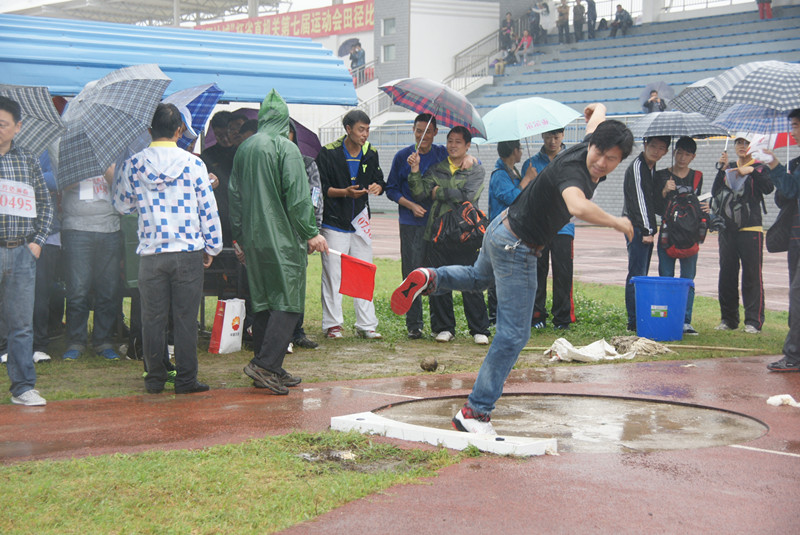 比赛当天风雨交加,气温的骤降、雨水的干扰,没有难倒赛场上的运动员。队员们冒着风雨一圈圈的长跑,用地上的积水清洗铅球后投掷,风雨中的100米冲刺让人感动。在女子乙组铅球比赛中,学校的黄霞以8米10的绝对优势获得比赛第一名;在男子中老年组100米决赛中,戚强以12秒81的成绩摘得铜牌;在女子甲组1500米长跑中,安光所李月琴在雨中以6分45秒的成绩获得第五名;黄霞在女子乙组立定跳远中以2米22的成绩获得第六名;学校高芹在女子乙组跳远比赛中以3米94获得第七名;强磁场中心张钠在男子甲组跳高比赛中以1米3的成绩获得第七名;在男子甲组3000米比赛中学校王正直以11分42秒95的成绩获得了第七名。