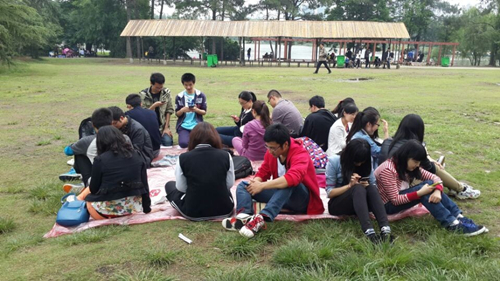 同学们在园内组织了游园健身走、快乐烧烤、母亲节给妈妈发短信等趣味活动。在游园健身走环节,同学们三五成群、绕园行走,在亲近大自然、欣赏美景的同时徒步环园绕行,比赛行走、强身健体。