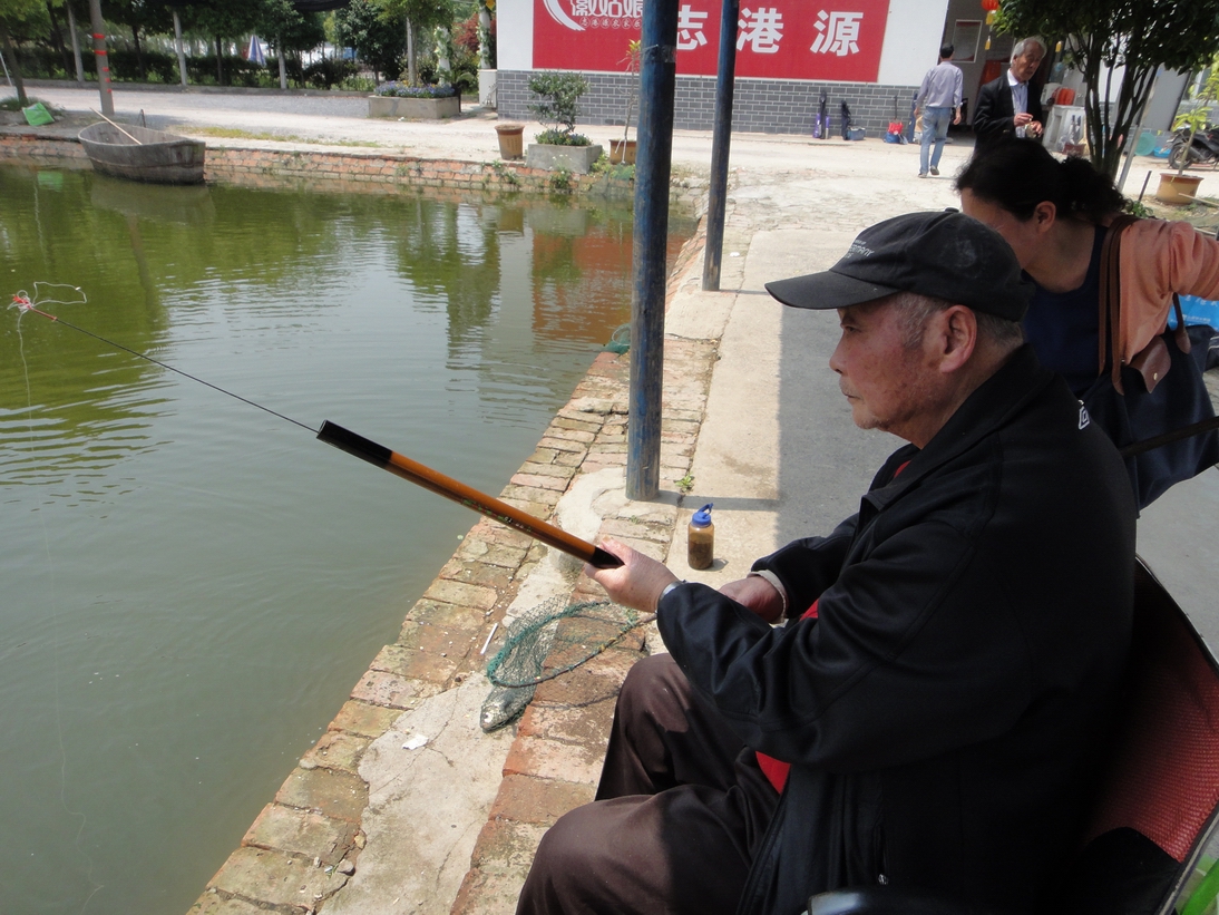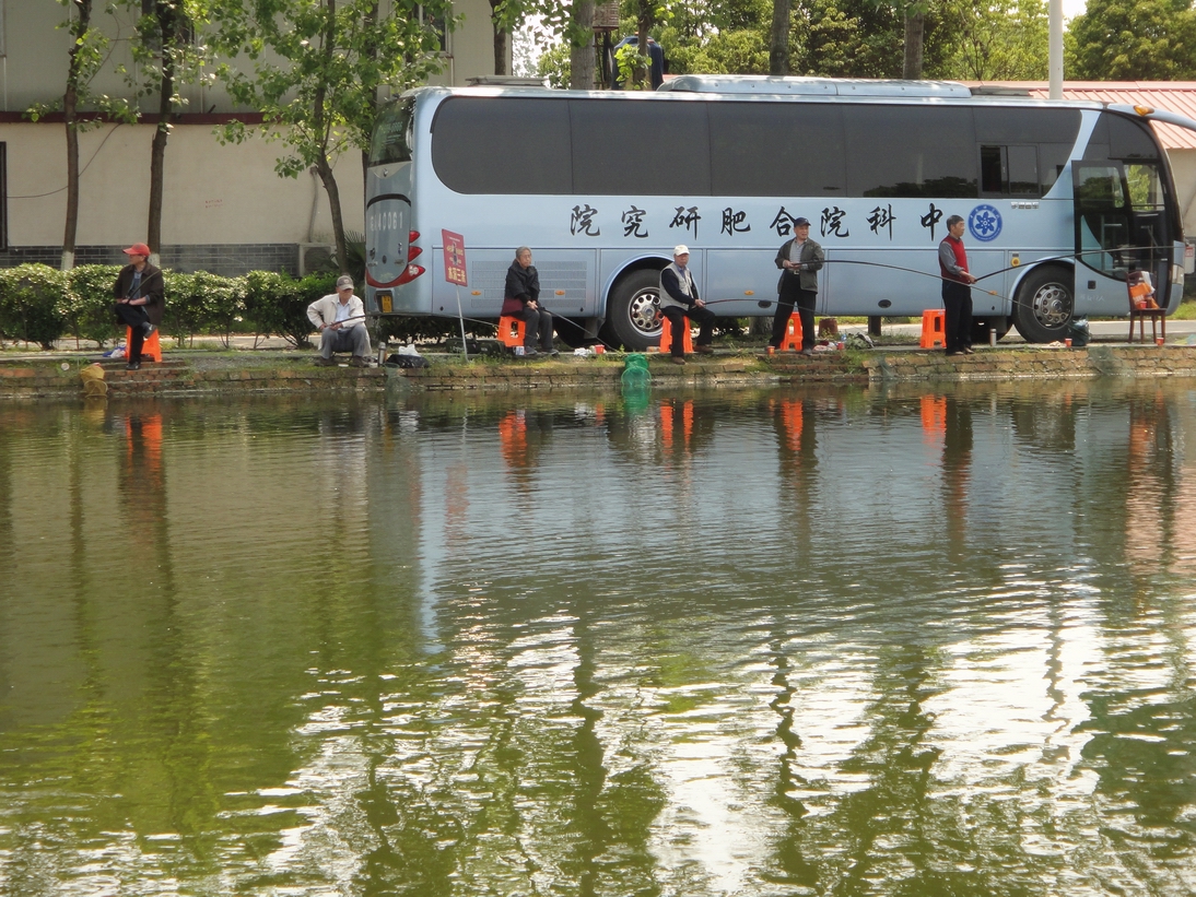 临近中午到了偏僻的牛角大圩乡。牛角大圩自古百姓筑堤防水,形成圩区,因整体形态似“牛角”,故得名“牛角大圩”,北接滨湖新区,东枕巢湖,南衔派河,西抵京台高速,属合肥市包河区管辖。眼看午餐时间快到了,为了安排合理紧凑,钓协负责人安排大家先用中餐再钓鱼。这些钓鱼爱好者急匆匆地吃完了饭,就操起了垂钓工具来到附近鱼塘,迅速选好点,打窝子下钩,享受钓鱼的快乐。当第一条鱼被钓上时,大家投以羡慕的眼光;当钓到大鱼时,大家都跑过去帮忙;有上钩的鱼儿弄脱了钩,很多人又为之感到惋惜……老年钓鱼协会是一个和谐的集体,真是退而求其乐。直至下午4点,会员们才依依不舍地乘车返回,圆满地完成了这次野外垂钓活动。