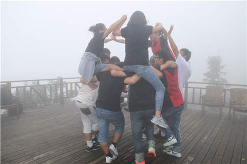 第二天上午的项目是定向越野,剩下的两只小队分别沿着不同的路线攀爬巨石山,首先全队下山者为胜,这个项目极大地考验了队员们的毅力和体力。当天山上下起了小雨,尽管有的队员腿曾经受过伤,但是在相互的扶持下,还是全体顺利完成了项目。比赛中两队各有千秋,汉队重视效率和结果,楚队偏重过程和经历,最终“汉国”小队顺应历史潮流,一统天下。随着最后大家抱在一起喊出“我们是最棒的团队”,整个培训项目也圆满结束。