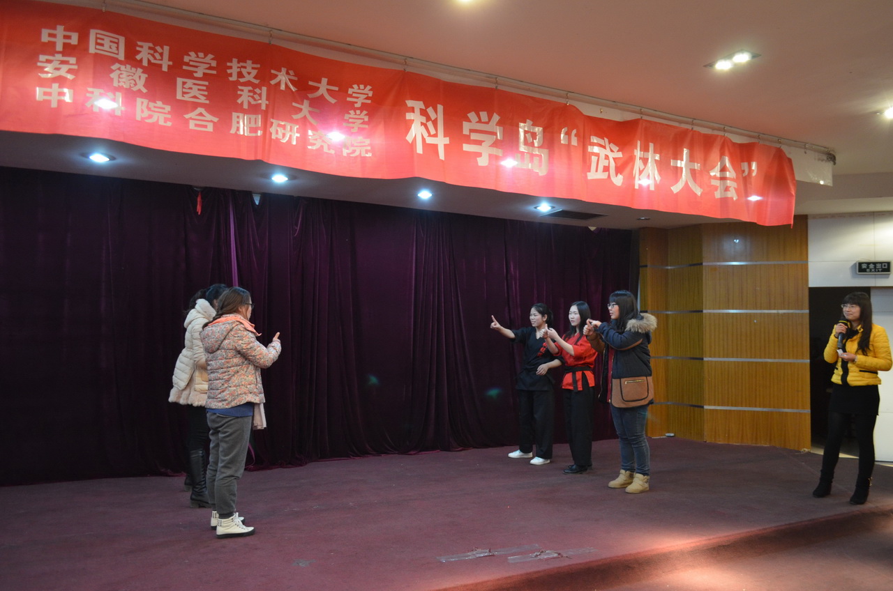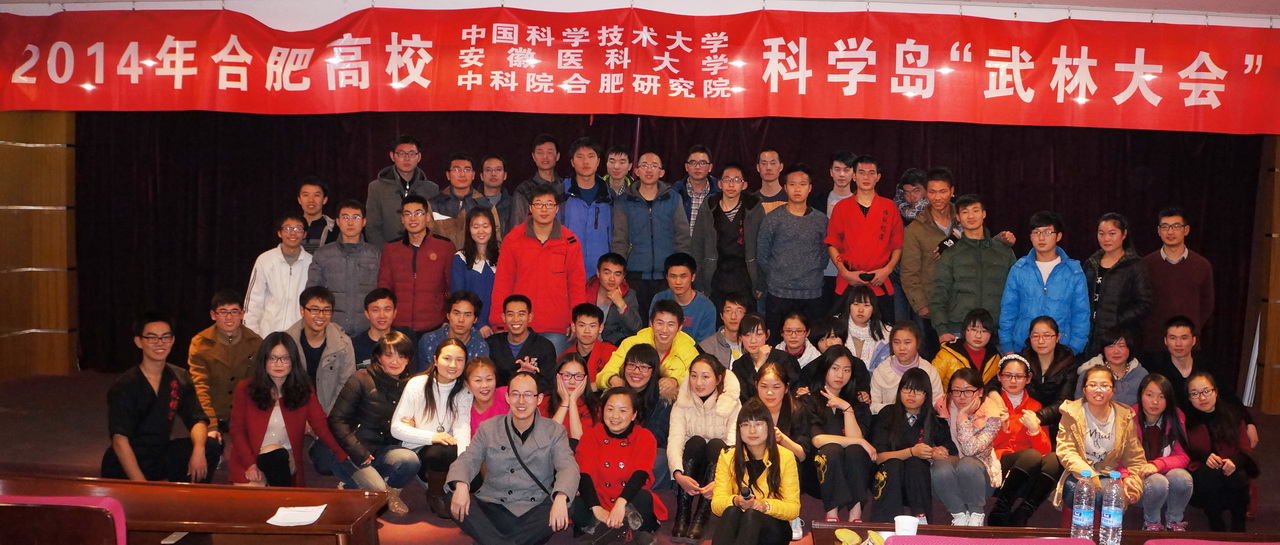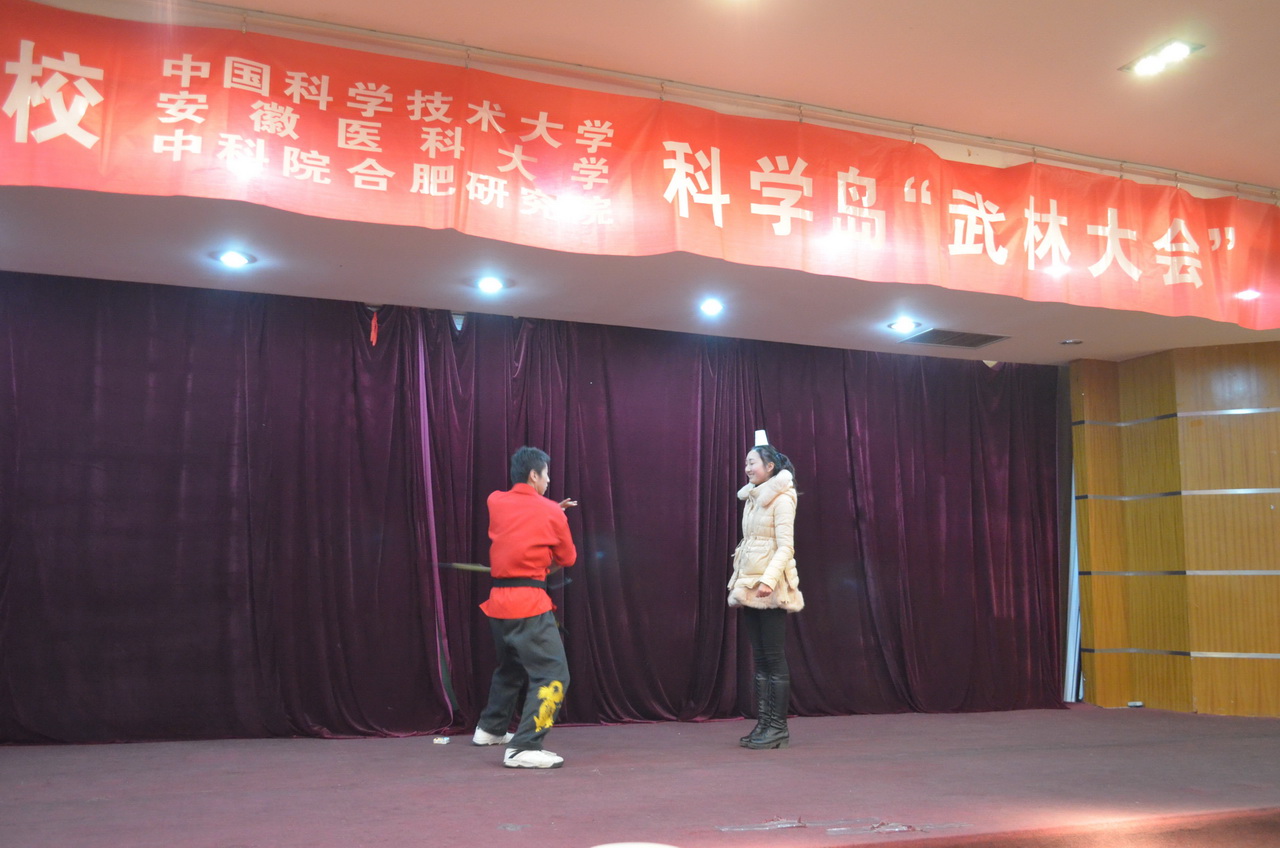 12月14日晚,由合肥研究院研究生艺术团武术协会举办的第二届研究生文化艺术节之“2014年合肥高校科学岛武林大会”活动在科学岛学术交流中心报告厅举行,中国科学技术大学和安徽医科大学武协的同学们应邀参加了本次交流活动。