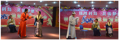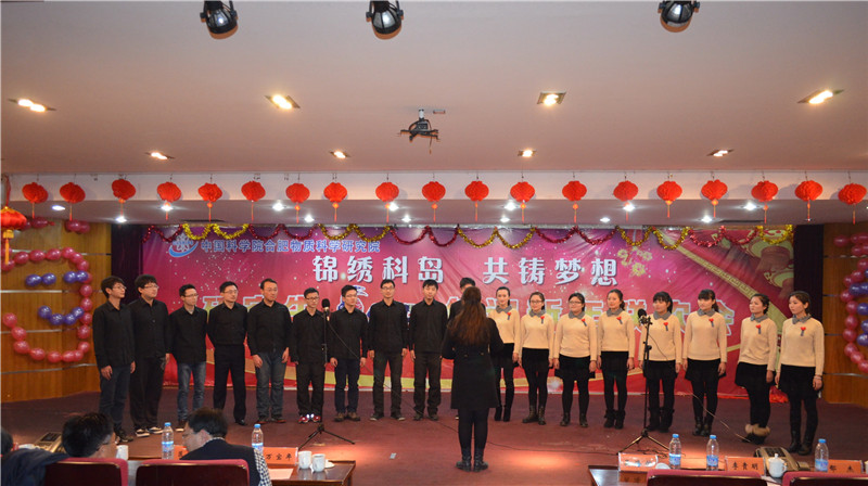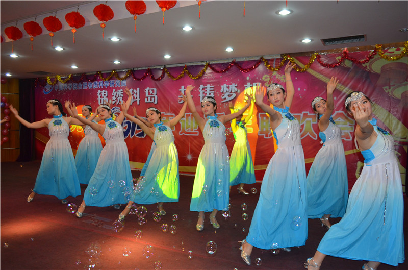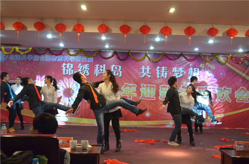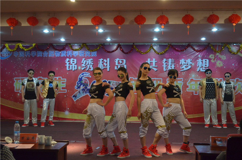 本次晚会以“锦绣科岛、共铸梦想”为主题,晚会持续两个多小时,节目内容丰富多彩:有舞蹈、歌曲、小品,相声等,节目安排别出心裁。晚会以欢快的开场舞《来来来,快请我跳舞》拉开帷幕,研究生艺术团舞蹈队的同学们用优美的舞姿、青春的热情带给大家新年的欢乐气氛。接下来固体所同学们表演的小品《梁祝》颠覆经典、笑料百出、High翻全场。等离子所黄跃恒同学表演的单口相声《打油诗》,内容和词句通俗易懂、表演诙谐幽默。研究生艺术团合唱队实力唱将李剑同学用浑厚的男中音演绎了一首《滚滚长江东逝水》,听者无不为之动容。来自等离子体的张斌同学演唱的歌曲《神马》也毫不逊色与原唱,观众席爆发出阵阵掌声。在舞蹈队老师的带领下的群舞《阿根廷探戈风》为大家带来了别样的风情感受。与异域舞蹈不同,由舞蹈队女同学演绎的民族舞《女人花》充满传统韵味,民族的服装、东方韵味的美……