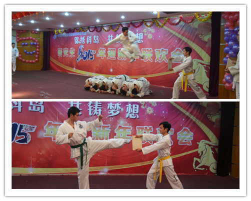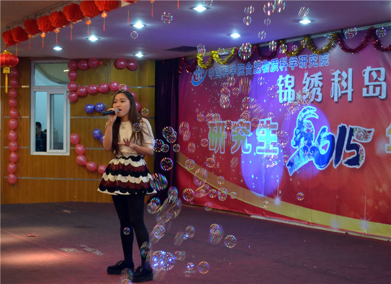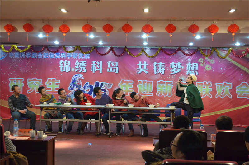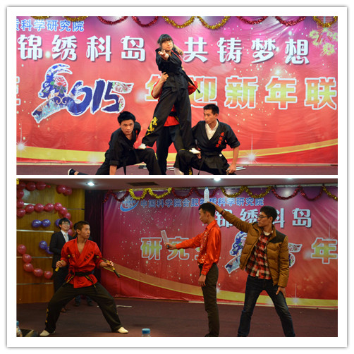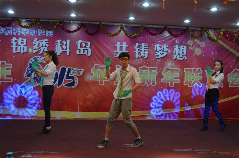 武术队本场晚会为大家带来了精彩的武术表演,包括散打套路、跆拳道表演、双节棍表演,同学们敏捷的身手赢得了现场阵阵掌声。擅长演唱英文歌曲的2012级硕士生檀沐为大家带来了一首《can’t take my eyes off you》再一次用实力征服了全场的观众。安光所同学们编排的舞蹈《舞随乐动》体现了同学们帅气、热情、欢快的风貌。技术生物所和安光所同学们表演的舞台剧《魔法岛》取材于科研实验,用夸张浪漫的手法表现了生物学知识,将晦涩的科学知识演绎的通俗易懂又发人深思。研究生艺术团辩论队带来了精彩的小品《科岛相亲大会》,将奇葩的人物性格刻画得入木三分,模拟相亲现场笑料百出,将晚会气氛推向新的高潮。智能所表演的小品《科学岛生活》调侃了在科学岛读书、生活的苦与乐,各种吐槽同时饱含对科研生活的热爱。来自强磁场的小品《团结一心》则通过生活中的小冲突体现了同学们团结一心向上的主旋律。核安全所的帅哥美女们带来的舞蹈《小苹果》带领观众重温了今年的火热歌曲,劲舞欢歌使现场洋溢着节日的欢快气氛,而节目中间穿插的抽奖环节给晚会带来别样的期待和惊喜。