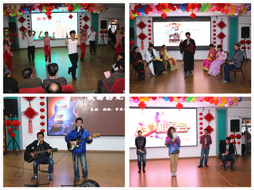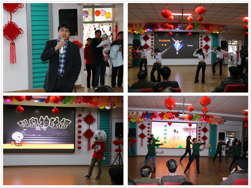 整场联欢会精彩纷呈,节目形式多样,包括歌唱、舞蹈、小品、乐器演奏及游戏和抽奖等等,17个精彩的表演为大家带来了一场美妙的视听盛宴。下午1时30分,联欢会在新职工《张灯结彩》中拉开帷幕,表演者用欢快激扬的舞步,让大家引入了浓浓的节日氛围中。《让我们回家吧》唱出了所有人心中那份浓浓的思乡之情,以及对海外学子的牵挂。音乐书法秀《国风》、笛子独奏《乡间的小路上》让大家在欣赏美妙音乐的同时,领略中国古典文化的风采。独唱《父亲的草原母亲的河》诉说心头难以言喻的乡愁,带来了父爱如山,母爱如水的深深感动;歌曲联唱、吉他弹唱《我的好兄弟》,以及合唱《相亲相爱的一家人》、《爱》、《亲爱的朋友来相会》等歌曲风格迥异,或慷慨激昂、热情似火,或温馨动人、柔情似水,但首首情真意切,声情并茂,唱出了对科研、对生活、对朋友和家人的美好祝福。舞蹈《探戈》、《小苹果》以及柔力球表演《澎湖湾》,音乐动感、活力四射,跳动的旋律、动感的舞姿引燃了观众的热情;语言类节目《科岛神吐槽》、《龙门镖局》、《土豪相亲会》将科研工作和生活实际融入表演,并采用视频播放和现场表演相结合的新形式,用调侃幽默的台词、时尚的网络语言、反串的造型、夸张的表演博得满堂喝彩。精彩的节目中间穿插的互动游戏更增添了许多乐趣,特设的抽奖环节让每个人都心跳加快,一个个幸运和惊喜从天而降,将会场的氛围推向高潮。