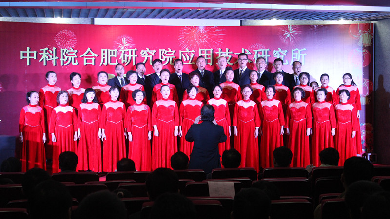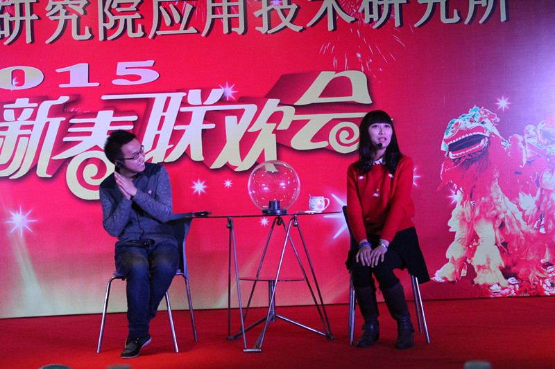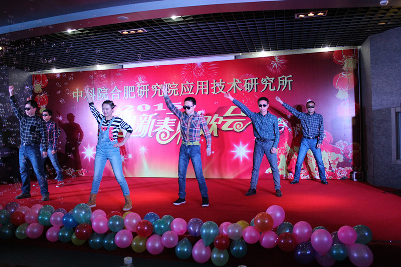 在热舞《小苹果》中联欢会正式拉开序幕,随着轻快的音乐,6个年轻人活力四射,尽情展示年轻的美好。紧接着就是《靠谱兄弟》、《你最珍贵》、《冬之约》等一系列形式多样的表演节目陆续登场,充分展示了应用所职工、研究生多才多艺、积极活泼的青春风采。特邀表演嘉宾余大军的《祖国,慈祥的母亲》唱出了所有人浓浓的爱国情怀;研究生辩论队的《科岛相亲大会》,使应用所每个人的科岛情结更加深刻,而研究生处的舞蹈《女人花》清新唯美,让大家仿佛看到了一朵朵在风中勇敢绽放的花蕊。一曲由所领导和部分职工共同演唱的《国家》把联欢会推上了高潮,应用所就是一个融洽的大家庭。最后,由等离子体所爱乐合唱团助兴演唱的《共和国之恋》和《雕花的马鞍》为整台联欢会画上了完美的句号。