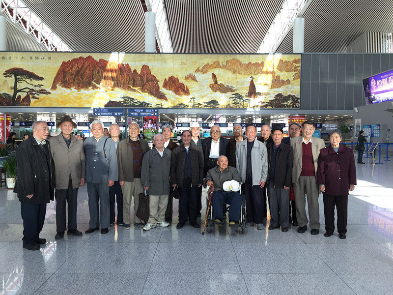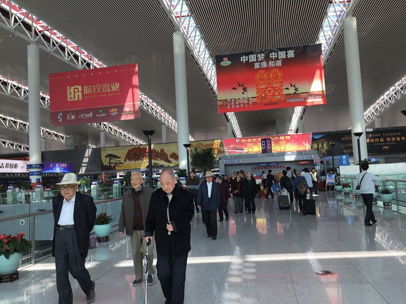 9点刚过,离休干部乘车来到合肥市新建的新桥机场。老干部们被眼前宏伟壮观的景象深深地触动了,宽敞明亮的候机大厅比起以前的骆岗机场要大很多倍,浓郁的现代建筑风格、豪华高贵的气派、精巧优美各种设施,令人目不暇接,赞叹不已。老干部缓步地观看着,细细地品味着,激动的像孩子一样要求拍照留念,久久不愿离去。