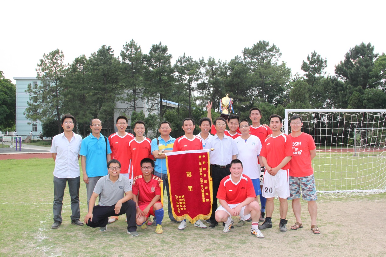 决赛当天,合肥研究院副院长吴四发亲临现场给大家加油。本届比赛的决赛充满悬念,双方实力相当,吸引了众多观众前去加油助威。赛前,双方队长分别设计了适合自己球队风格的战术。比赛开始后,双方都严格执行战术。等离子体所以文伟为中场核心,希望通过灵活的跑位、精准的传球,试图撕开安光所的防线。安光所由戴庞达坐镇后场,布置了稳固的防守体系,并通过前场的奋力逼抢,试图搅乱对手的传控战术。上半场中段,安光所抓住对手防守失位,由戴庞达后场插上,一脚低射,敲开对方大门,安光所1:0领先。上半场后半段,双方互有攻防,但还是很难对对方大门形成威胁。下半场,等离子体所换上年轻队员轮番冲击安光所的防线,均被安光所奋力化解。安光所则通过后场高球,找门前前锋,也频频向等离子体所大门施压。在比赛将要结束之时,等离子体所中场核心文伟,抓住对方盯人不紧的漏洞,一脚怒射破门,将比分扳成1:1。常规时间双方踢成1:1平,直接进入点球大战,点球大战中等离子体所罚球队员过于紧张,罚丢两粒点球。最终安光所一队以总比分5:3(点球比分4:2)战胜等离子体所一队,赢得了科学岛第一届五人制足球赛冠军!