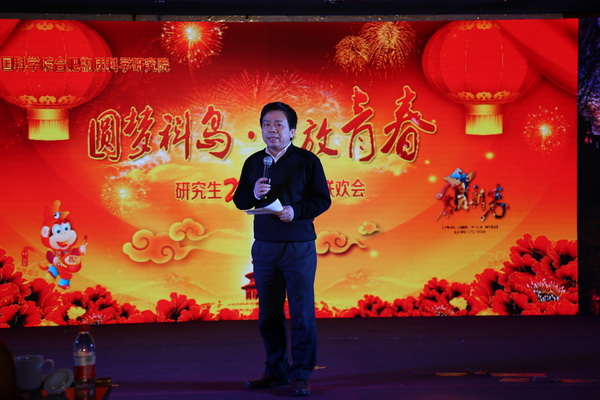 万宝年副院长为联欢会致辞,他为师生带来了新年的美好祝福,对全体师生在2015年为合肥研究院各项工作做出的努力和贡献表示衷心的感谢,期望大家再接再厉,共创辉煌,并祝愿同学们学业进步,前程似锦。
