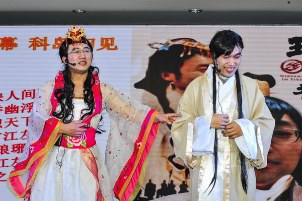 本次联欢会以“圆梦科岛 绽放青春”为主题,节目形式多样、内容丰富多彩:不仅有舞蹈、歌曲、小品等常规类节目,更有武术、幽默剧、散文朗诵、乐队演奏等新颖节目。联欢会以欢快的《扇子舞》拉开帷幕,研究生艺术团舞蹈队的同学们用优美的舞姿、青春的热情带给大家辞旧迎新的欢乐气氛。强磁场的许学莉黄栋梁等同学给我们带来幽默剧《黄河大合唱》以绘声绘色的动作配合激情昂扬的黄河大合唱背景音乐,将中国抗战时期青春与热血表达得淋漓尽致;辩论队的同学们为大家带来的《搞笑新闻联播》诙谐幽默,带来新闻联播新体验;夜色阑珊组合演绎的《yellow》、王雪霏同学的《也许明天》,生物所周清同学的《痴心绝对》,深情的演唱赢得了热烈的掌声;智能所小品《科岛乱弹》结合新生的心理特点和老生的科研生活点滴,用激情与睿智表达他们对科研事业以及科学岛大家庭的热爱;舞蹈队的《爵士舞》炫目动感、充满激情与活力;《神话》则曼妙多姿、情深意切,看的观众如痴如醉;武术协会为我们带来的《武道奇缘》,一群帅哥美女们不仅虎虎生威、一展好身手,而且结合情景剧将青春与爱情贯穿其中,别出心裁;李晨琨的吉他弹唱,为正在追求真爱的人们加油呐喊;实力唱将向皓明同学用浑厚的男中音演绎了一首《月半小夜曲》;韩东成同学散文朗诵《野马渡》声情并茂,以其独特的嗓音带大家一起走进诗情画意中,征服了在场观众;谭肃,曹航,肖超,李可等同学给我们带来小品《大话西游之非诚勿扰》颠覆经典、笑料百出、High翻全场;核安所的同学们给我们带来了beyond脍炙人口的粤语金曲《真的爱你》,一个现场的乐队,让大家在电吉他、电子琴和架子鼓的音乐盛宴中重温经典;固体所的王乐等同学小品《琅琊榜》为大家延续男主角林殊的行踪,演绎他与霓凰、小荷之间的真爱,反转的剧情、反串的角色,加上动作、眼神与语气的拿捏到位、把控自如,让现场的观众乐到不能自控。