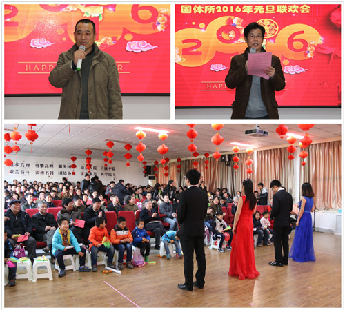 12月31日下午,固体所2016年元旦联欢会在小楼学术报告厅举行。合肥研究院副院长刘建国、党委副书记兼纪委书记邹士平,固体所领导班子成员出席联欢会,全所职工、研究生共400多人欢聚一堂。本次活动由固体所工会主办,为大家在辞旧迎新之际献上一场视觉和听觉的盛宴。