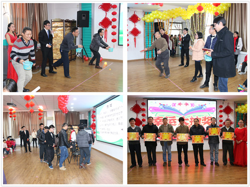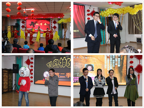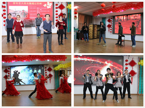 联欢会在新职工《舞动青春》中拉开帷幕用优美的舞姿、青春的热情带给大家新年的欢乐气氛。接下来的节目精彩纷呈:双人相声《懒人糗事》则以精妙绝伦的语句时捧时逗,频频赢得现场师生们的笑声和掌声。手语歌《因为爱在心中》让观众们从无声的语言中,感受到了浓浓温情,和远在异国他乡的同事、同学们的深切祝福。四室和六室的歌曲串烧,以及小合唱《让世界充满爱》曲目风格迥异,或慷慨激昂,或温馨动人,声情并茂,引人入胜。笛子演奏《女儿情》、古筝演奏《渔舟唱晚》让大家在婉约悠扬的乐曲声中领略中国古典文化的风采。《爵士舞》动感十足,活力四射,点亮了整个舞台。在轻柔的音乐声中,舞蹈《华尔兹》优雅的舞姿、炫动的舞步,让人不禁想跟着翩翩起舞。服装表演《似水年华》服装华美,表演者仪态端庄,一出来就惊艳了全场。语言类节目脱口秀《科学岛神吐槽第二季》、小品《荆轲刺秦》、魔术小品《我要上春晚》则展现了理工科才子们同样过硬的文科功底、高超的视频制作能力和堪比科班出身的表演水平,他们将科研工作与业余生活完美融合在一起,一个个妙语连珠的段子引得观众爆笑连连。精彩的节目中间穿插的互动游戏更增添了许多乐趣,特设的抽奖环节让每个人都心跳加快,一个个幸运和惊喜从天而降,将会场的氛围推向高潮。联欢会在大合唱《我相信》中圆满落下帷幕。