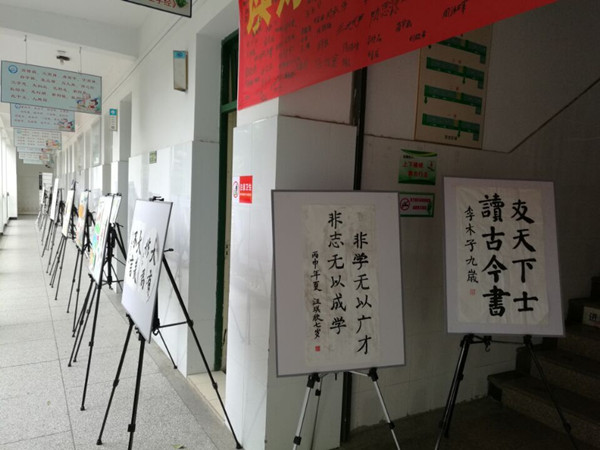 此次书画展作品有上百幅,主要来自小学第二课堂绘画班孩子们的作品和各班部分孩子的优秀作品。作品琳琅满目,异彩纷呈。缤纷的色彩,表达心灵的向往;遒劲的书法,传递炽热的才情。