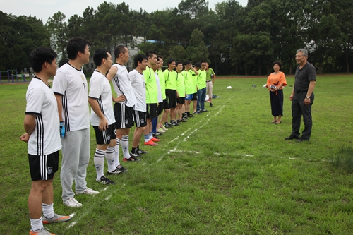 决赛当天,所党委书记张晓东来到球场给大家鼓劲加油,并为决赛开球,和场边的拉拉队员一起为两队加油助威。