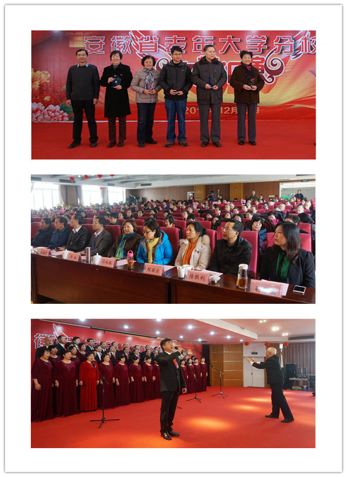 12月15日下午,由会长单位中科院合肥研究院承办的安徽省老年大学分校协会文艺汇演在科学岛举行,演出团队给250余位观众带来了一场精彩纷呈、引人入胜的文艺演出。各分会长和相关领导还为在老年大学书画展上书画作品成功义卖的老同志们颁发了奖杯,此次演出除了11所分校参加,还特邀了中国科技大学金秋艺术团给大家带来精彩节目。