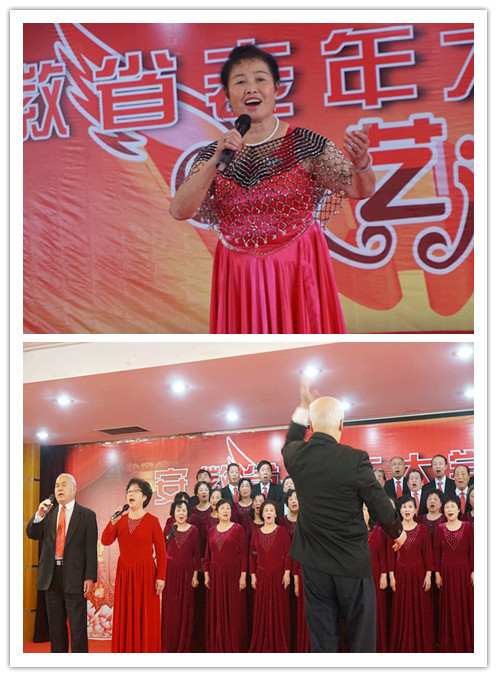 会上,安徽老年大学分校协会会长、合肥研究院副书记兼纪委书记邹士平致欢迎词,演出在中国科技大学金秋艺术团表演的的舞蹈《梨花情》中拉开帷幕。随后的独唱《祖国慈祥的母亲》、舞蹈《丝路敦煌》、模特表演《烟花三月下扬州》、歌舞《梦中的额吉》、舞蹈《祖国万岁》、柔力球表演,《雪域踢踏》、健身舞《绿旋风》、舞蹈《袖中情韵》、模特表演《晚霞胜似五月天》、民族舞《祝福》、舞蹈《中国美》、大合唱《过雪山草地》、《一切献给党》等节目用欢快的歌声和舞蹈表达了对伟大祖国的深情祝福,博得了现场观众阵阵掌声。