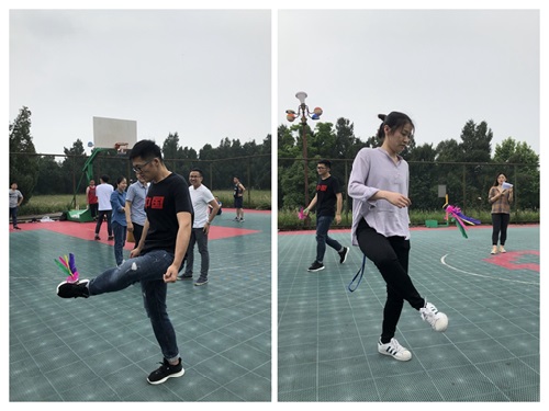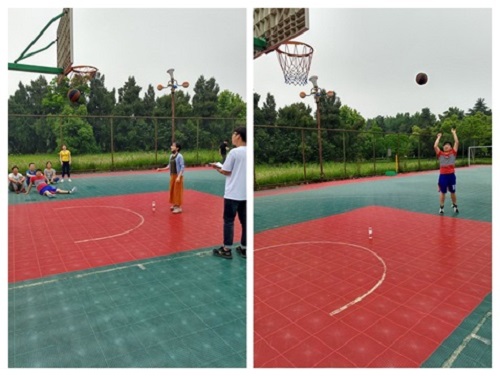 此次“趣味运动会”活动共有“趣味投篮”、“踢毽子”两个部分。在“趣味投篮”比赛中,同学们都打足了精神,篮球从同学们的手中掷出,只见一道闪亮的弧线从空中坠落到篮筐里。瞬间,掌声、欢呼声在篮球场上持续响起。与此同时,“踢毽子”比赛也在如火如荼地进行着,每一位选手都使出浑身解数,尽可能在规定时间内获得更多的分数。